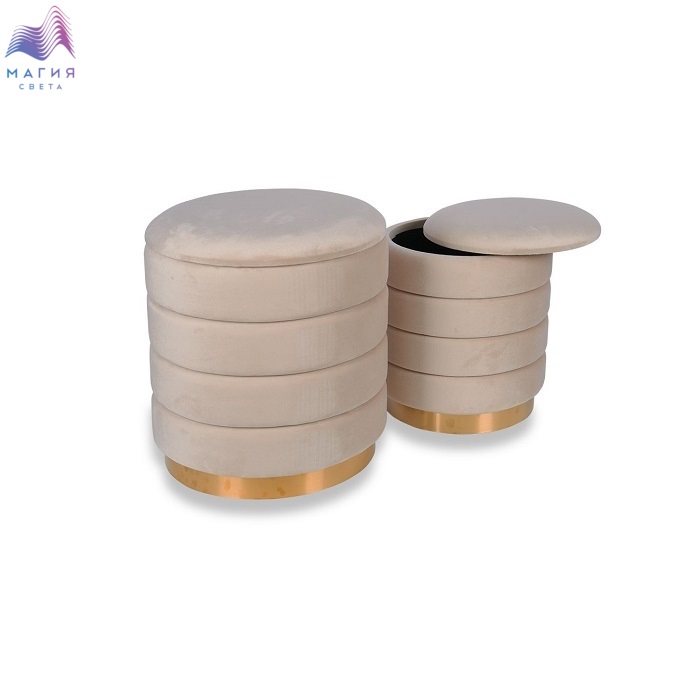 Габариты большого пуфика - 40x44 см, а малого - 33.5x38 см.