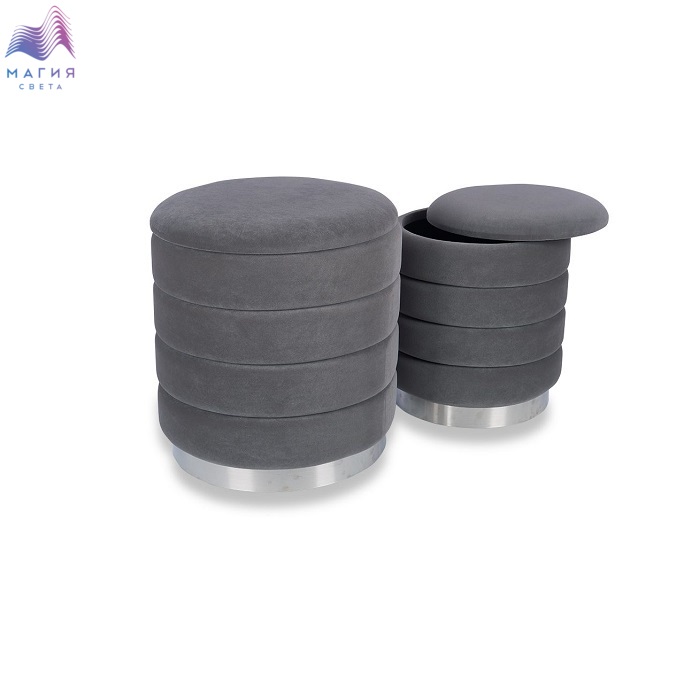 Габариты большого пуфика - 40x44 см, а малого - 33.5x38 см.