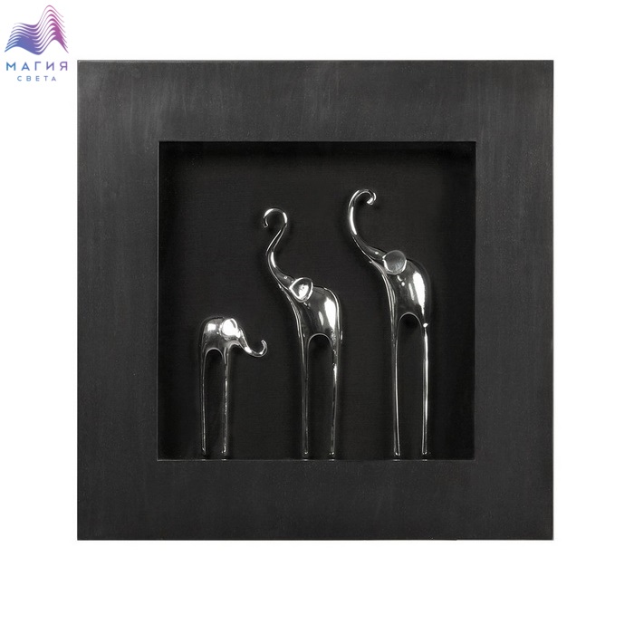 Настенное панно Mart Gallery "3 слона" 15067A. Рама - цвет черный.