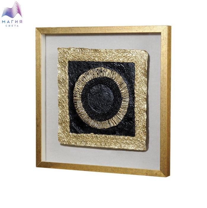 Настенное панно Mart Gallery "Бумажный замок 1" 30210A изготовлено из композитного материала в раме из шпонированного МДФ под стеклом. Цвет рамы - патинированное золото, цвет панно - золото. Подложка выполнена из фанеры, обтянутой кремовым холстом.