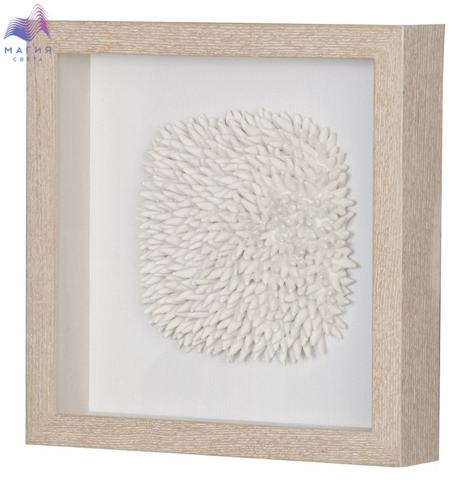 Настенное панно Mart Gallery 23599C выполнено из композитного материала в раме из шпонированного МДФ под стеклом. Цвет рамы бежевый с текстурой дерева, цвет панно - белый. Подложка выполнена из фанеры, обтянутой белым холстом.