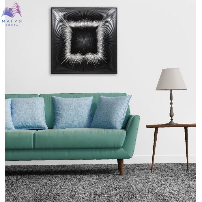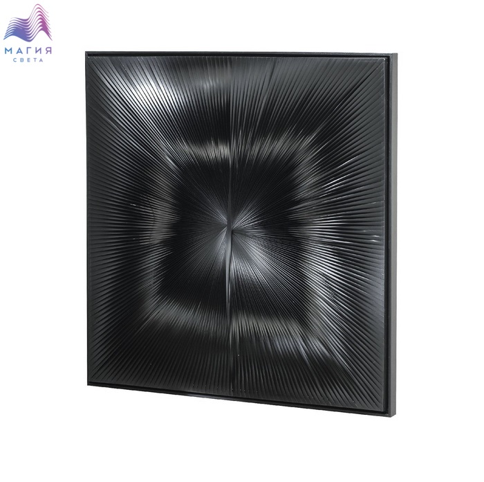 Настенное панно Mart Gallery "Иллюзия Квадрат" 30393 изготовлено из ткани в раме из шпонированного МДФ под стеклом. Цвет рамы - черный с текстурой дерева, цвет панно - белый. Подложка выполнена из фанеры, обтянутой черным холстом.