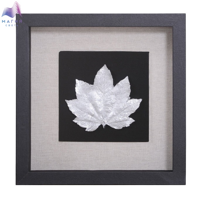 Настенное панно Mart Gallery "Листья 3" 17420C изготовлено из композитного материала в раме из шпонированного МДФ под стеклом. Цвет рамы - черный с текстурой дерева, цвет панно - серебристый металлик. Подложка выполнена из фанеры обтянутой черным и бежевым холстом.