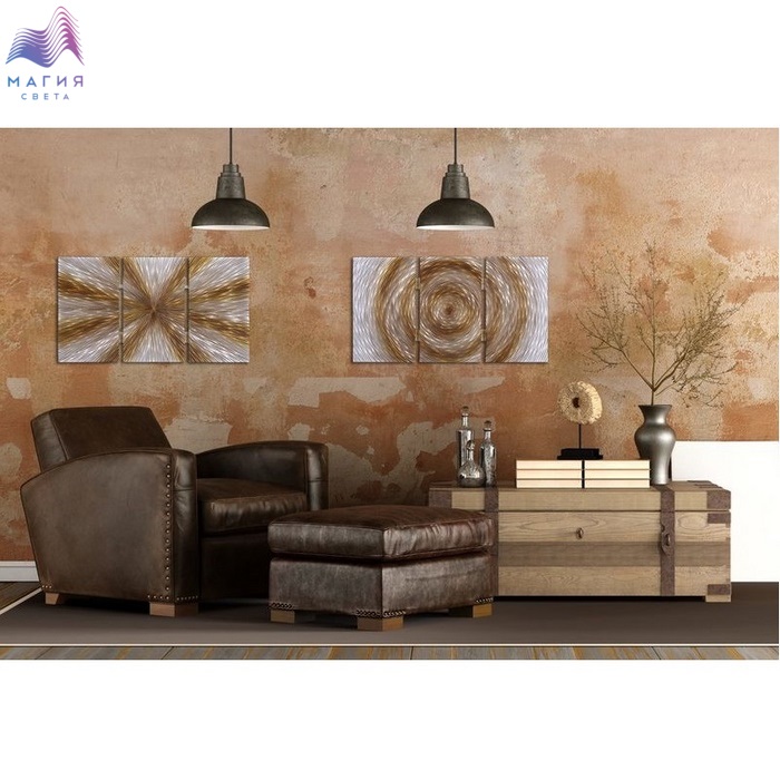 Панно "Салют 2" - настенное панно из фрезерованного МДФ. Цвет панно золото и серебро. Панно состоит из трех частей закрепленных на направляющих. Данное панно можно повесить как вертикально, так и горизонтально.