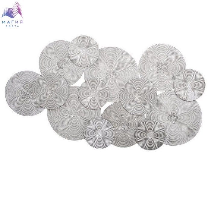 Панно "Серебрянные диски" — это настенное панно из фрезерованного МДФ. Цвет панно - серебро. Панно состоит из четырнадцати кругов, которые соеденены на направляющих. Данное панно можно повесить как вертикально, так и горизонтально.