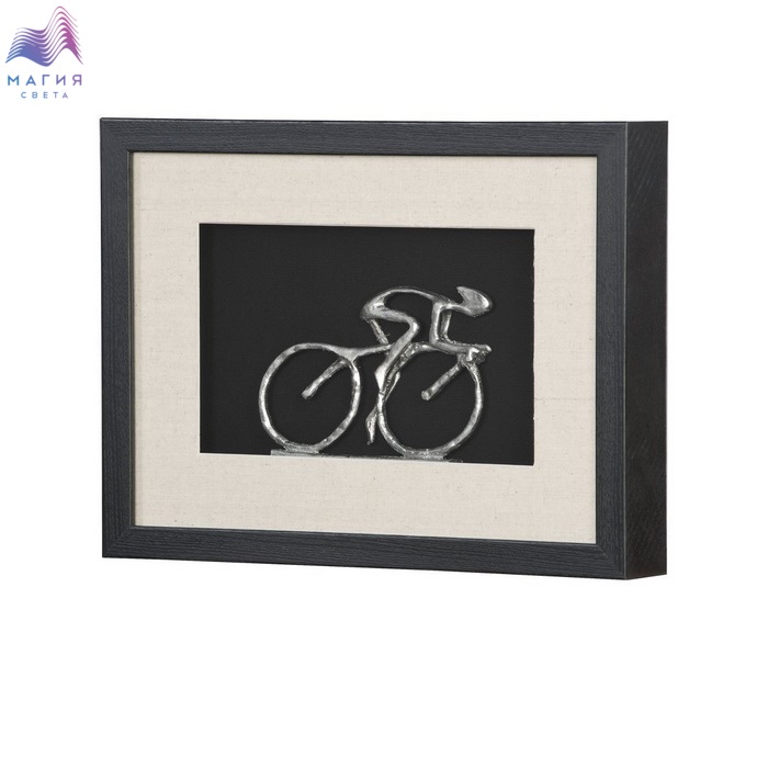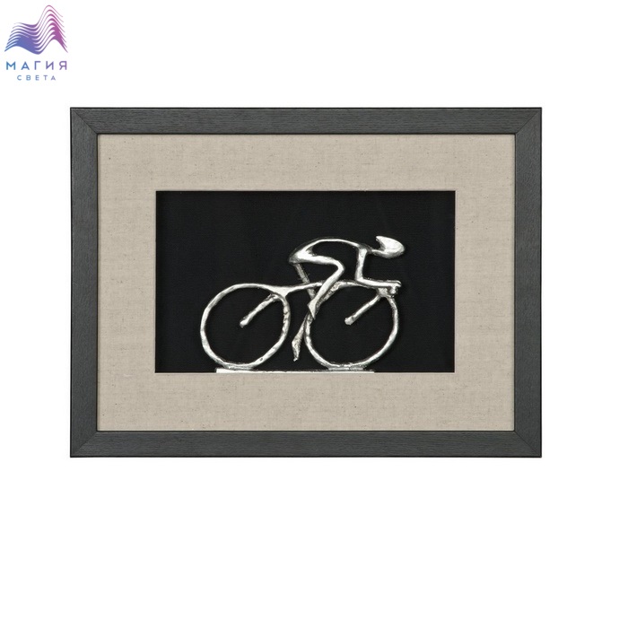 Настенное панно Mart Gallery "Велосипедист 2" 17854B изготовлено из композитного материала в раме из шпонированного МДФ под стеклом. Цвет рамы - черный с текстурой дерева, цвет панно - серебристый металлик. Подложка выполнена из фанеры, обтянутой черным холстом, паспарту выполнено из пластика, обтянутого кремовым холстом.