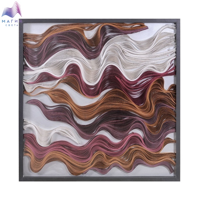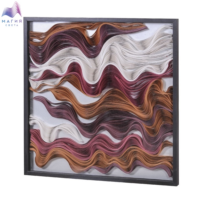 Настенное панно Mart Gallery "Волны вдохновения" 30534K изготовлено из бумаги в раме из шпонированного МДФ под стеклом. Цвет рамы - черный с текстурой дерева, цвет панно - разноцветный. Подложка выполнена из фанеры, обтянутой белым холстом.