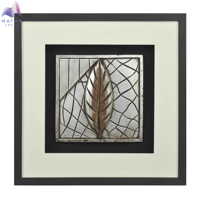 Настенное панно Mart Gallery "Волшебный лист 2" 19467B изготовлено из фрезерованного МДФ в раме из шпонированного МДФ под стеклом. Цвет рамы - черный с текстурой дерева, цвет панно - серебристый с элементами коричневого, паспарту - кремового цвета. Подложка выполнена из фанеры, обтянутой черным холстом.