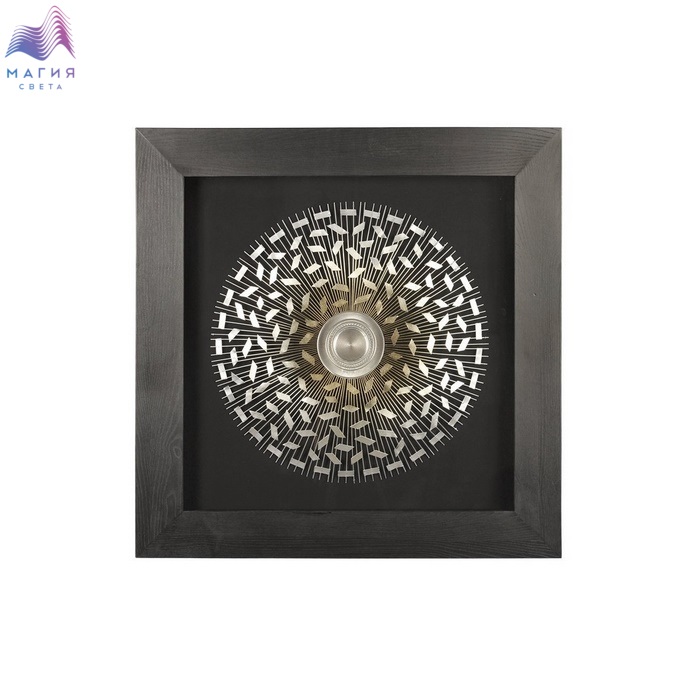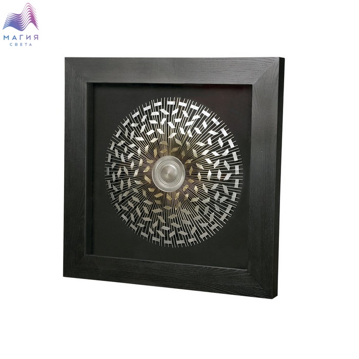 Настенное панно Mart Gallery "Вспышка" 16569 изготовлено из металла в раме из шпонированного МДФ под стеклом. Цвет рамы - черный с текстурой дерева, цвет панно - серебро и золото. Подложка выполнена из фанеры, обтянутой черным холстом.