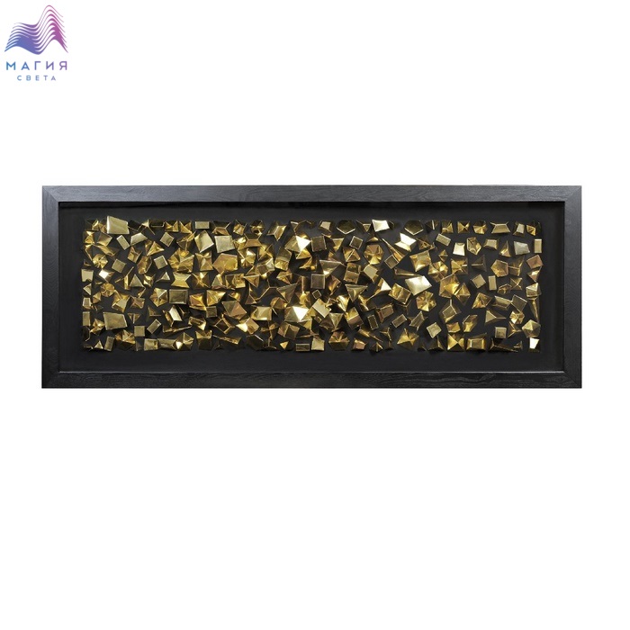 Настенное панно Mart Gallery "Золотые грани" 30248A станет акцентом в Вашем интерьере. Панно изготовлено из бумаги в раме из шпонированного МДФ под стеклом. Цвет рамы - черный с текстурой дерева, цвет панно - золото. Подложка выполнена из фанеры, обтянутой черным холстом. Множество кубов золотого цвета расположены внутри рамы. Данное панно можно вешать на стену как вертикально, так и горизонтально.