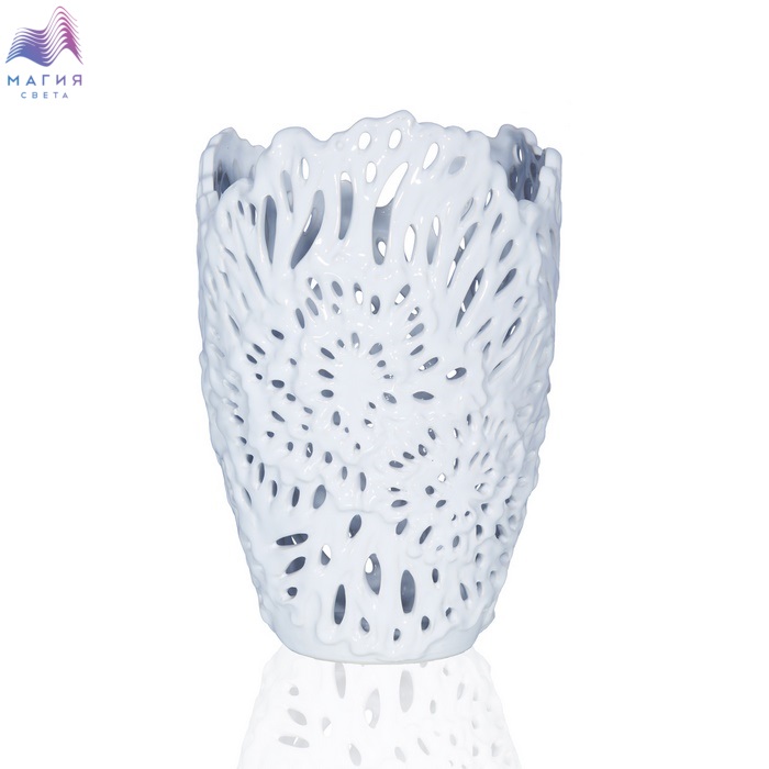 Белоснежная керамическая ваза Viviana с резной ажурной поверхностью лучше всего подойдет для интерьеров в стиле модерн, прованс и шебби-шик. Дополнительная изюминка этой вазы - нарочито неровный край горлышка.