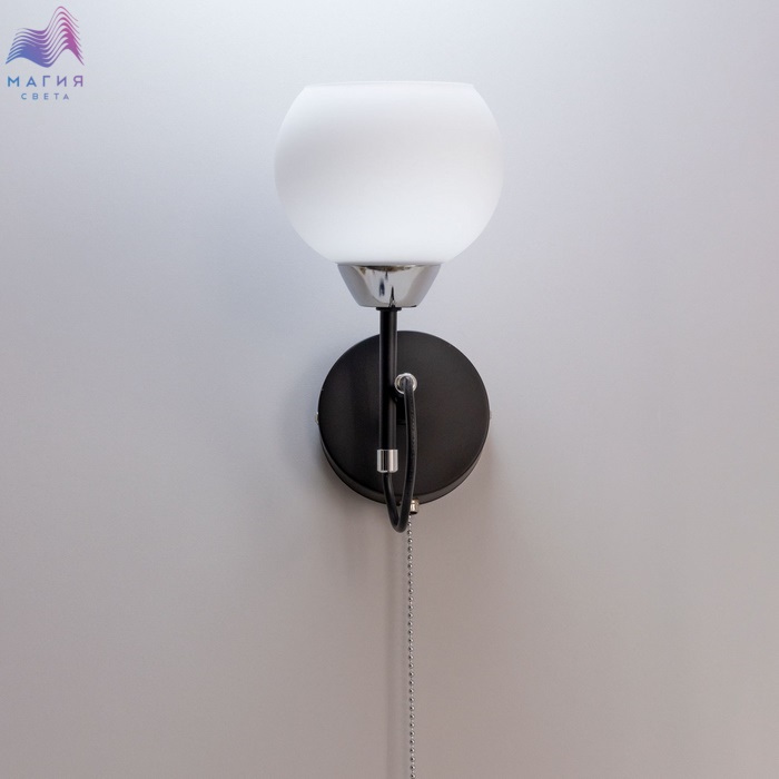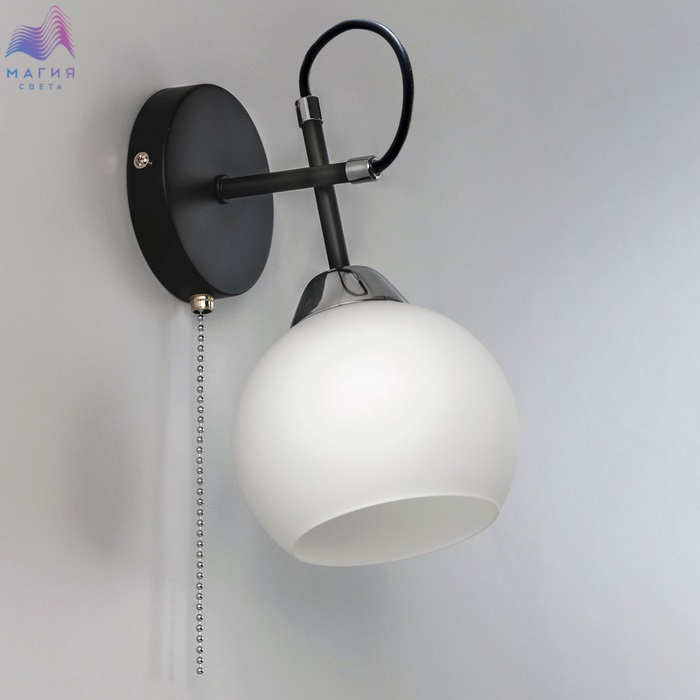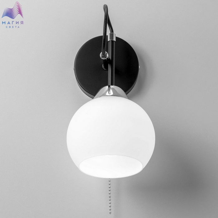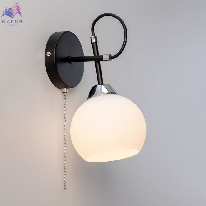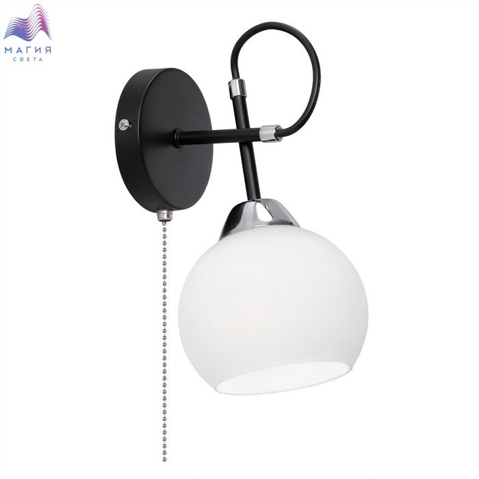 Современный настенный светильник Citilux Стивен CL141411 для стильных интерьеров. Корпус - металл, цвет - чёрный/хром. Плафон круглой формы, изготовлен из матового стекла.