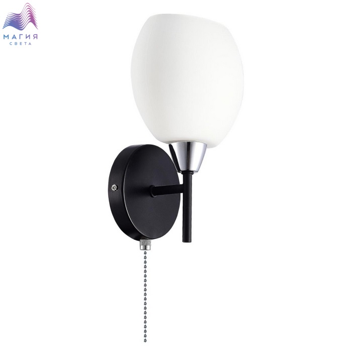 Бра Citilux Флорида CL148315. Материал: металл/стекло. Цвет: черный/хром/белый. На корпусе установлен выключатель.