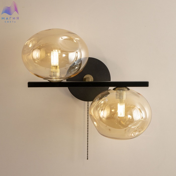 Настенный светильник Citilux Девис CL201321. Корпус светильника металлический, с круглым основанием. Цвет - коричневый/бронза. Стеклянные прозрачные плафоны необычной формы модного оттенка шампань.