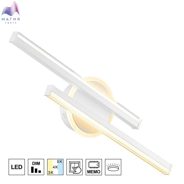 Настенный LED светильник Citilux Trent CL203520. Материал: металл/полимер. Цвет: белый. Встроенный ступенчатый диммер позволяет менять яркость освещения, а переключатель цветной температуры — выбрать теплый, нейтральный или холодный оттенок света.