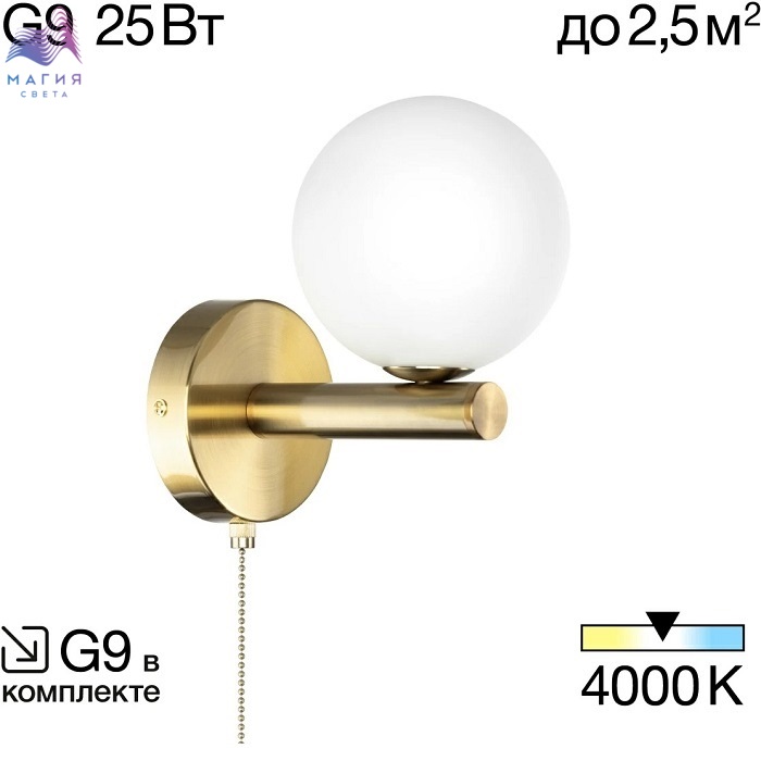 Бра Citilux Рунд CL205310N. Материал: металл/стекло. Цвет: бронза/белый. Плафон в форме шара.