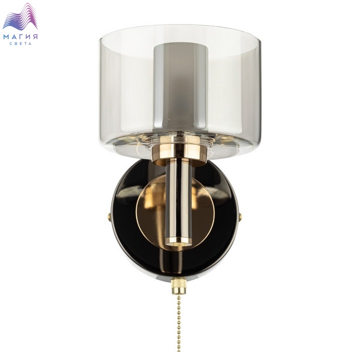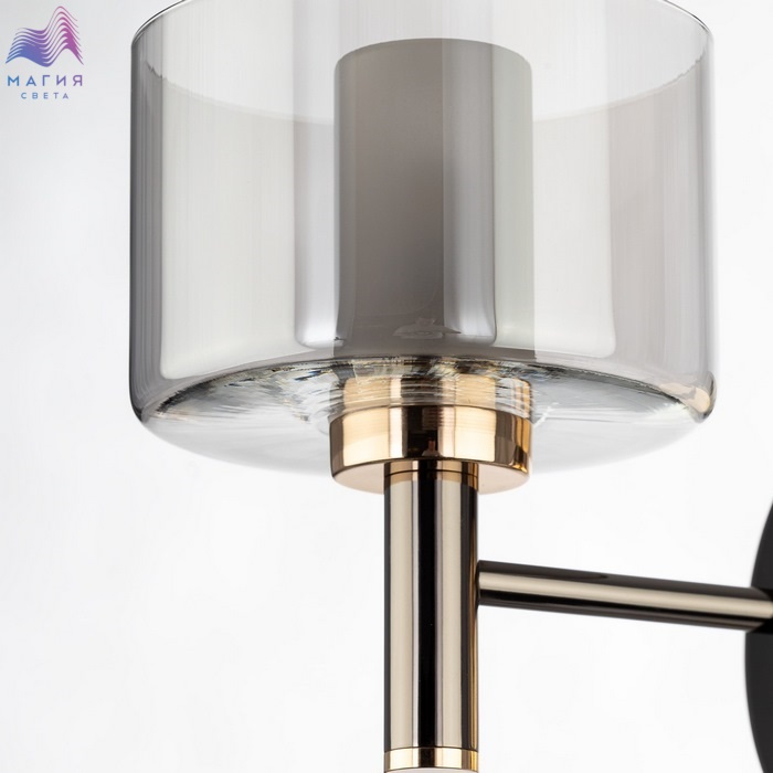 Бра Citilux ELAN CL241311. Материал: металл/стекло. Цвет: черный хром/золото/дымчатый. Плафон стеклянный двойной, цилиндрической формы. Внешний плафон из прозрачного стекла дымчатого оттенка, внутренний - белый полуматовый. На корпусе расположен выключатель.
