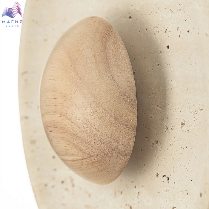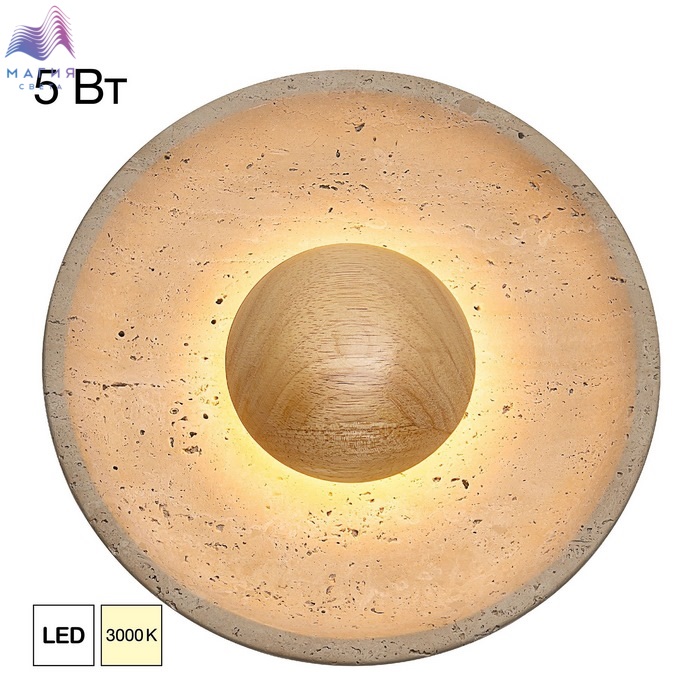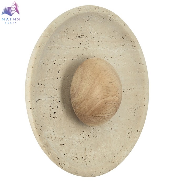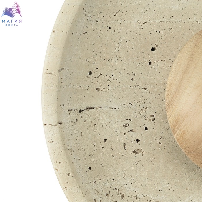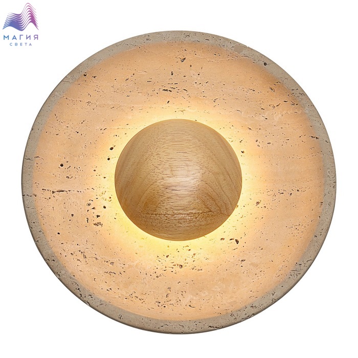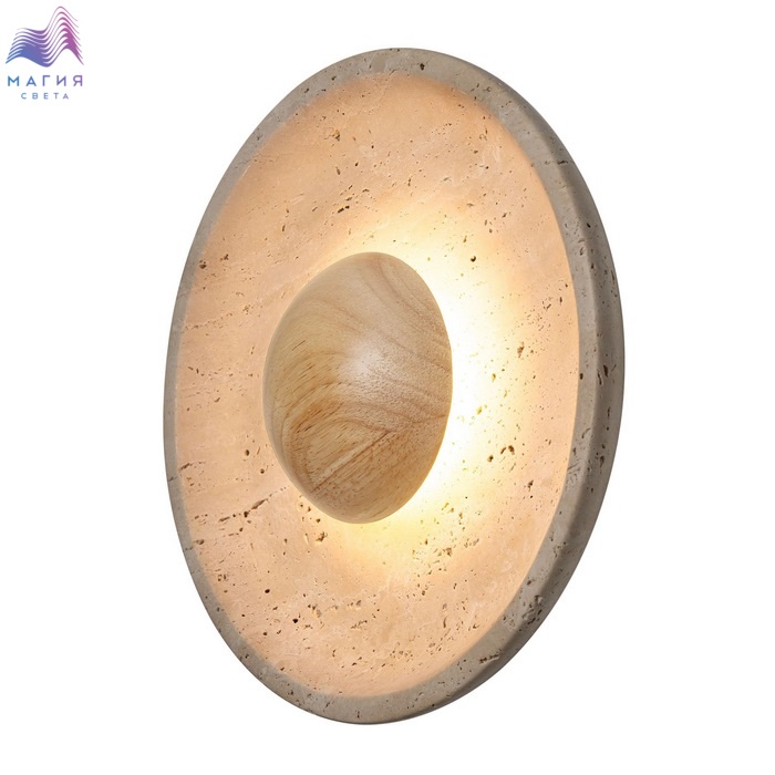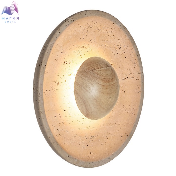 Светодиодный настенный светильник Citilux Mares CL246018. Материал: металл/травертин. Цвет: бежевый. Корпус — круглой формы, из натурального камня травертина бежевого оттенка. Светильник дополняет декоративный элемент — деревянное «блюдце» кремового оттенка.