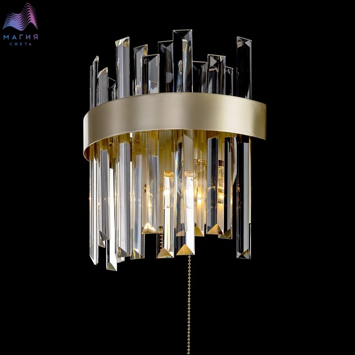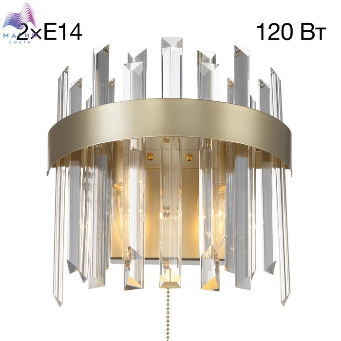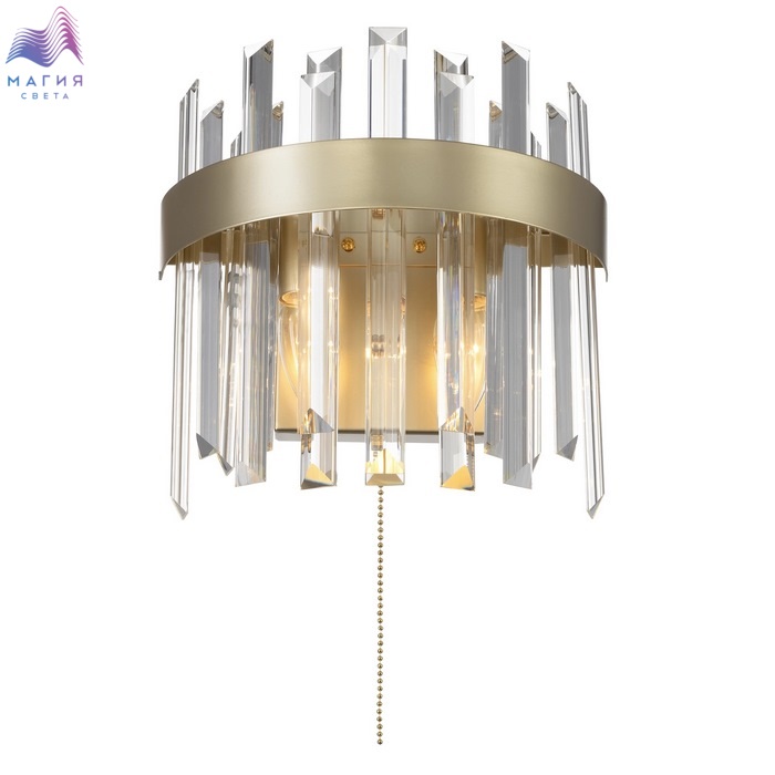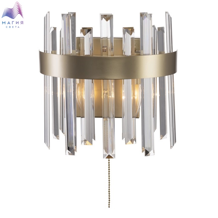 Хрустальный настенный светильник Citilux Лаура CL301422. Материал: металл/хрусталь. Цвет: шампань/прозрачный. Основание светильника металлическое полукруглой формы цвет шампань.