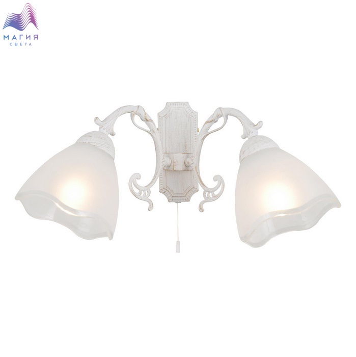 Бра двухрожковое Citilux Латур CL413420 исполнено в классическом стиле. Корпус настенного светильника металлический, с литыми рожками. Цвет белый с золотистой патиной. Плафоны стеклянные, полуматовые, с прозрачным волнистым краем. Настенное бра можно установить плафонами вверх или вниз.