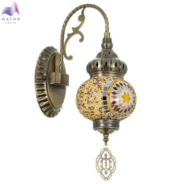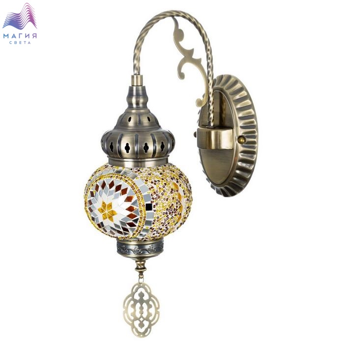 Бра Citilux Kair CL419315. Материал: металл/стекло. Цвет: бронза/янтарный. Плафон в форме шара, декорированный стеклянной мозаикой с янтарными оттенками.