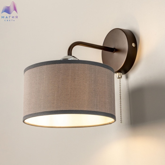 Настенный светильник Citilux Форма CL428411 для современных интерьеров. Корпус металлический, цвет венге (коричневый), с декоративными хромированными элементами. Абажур цилиндрической формы, из текстурной ткани серого цвета, на подложке из оптического полимера. Размеры абажура: диаметр 12см, высота 10см.