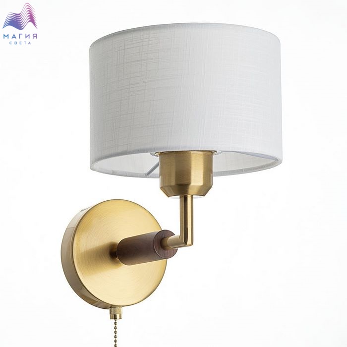 Настенный светильник Citilux SHERMAN CL436312. Материал: металл/текстиль. Цвет: бронза/венге/молочно-белый. Один рожок с абажуром в форме цилиндра, изготовленного из молочно-белой ткани с чуть шероховатой текстурой.