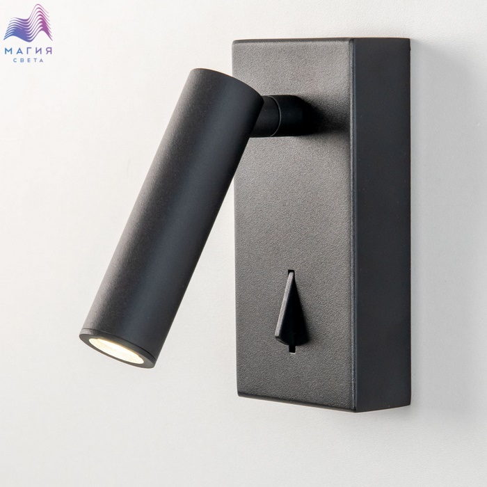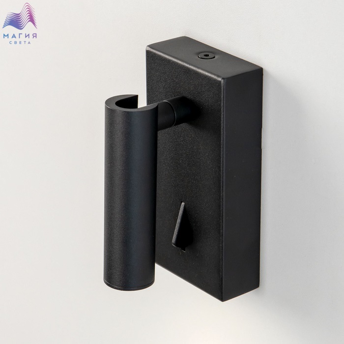 Настенный светодиодный светильник Citilux Декарт CL704351 для чтения. Корпус изделия металлический, прямоугольной формы, цвет чёрный матовый. Поворотная часть модели цилиндрической формы, со встроенным светодиодом, для акцентного и направленного освещения.