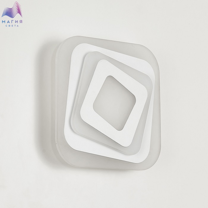 Бра Citilux Триест CL737B42 квадратной формы с закругленными углами. Основание металлическое белого цвета, материал рассеивателя – оптический полимер, белый полуматовый. У модели два светящихся яруса и центральная часть, которые могут светится как синхронно одним цветом, так и через один разными цветовыми температурами (выбирается при установке). Светильник управляемый, возможно включение 4-х стандартных настроек обычным настенным выключателем.