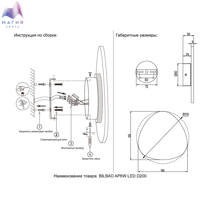 Артикул: BILBAO AP6W LED D200 BLACK