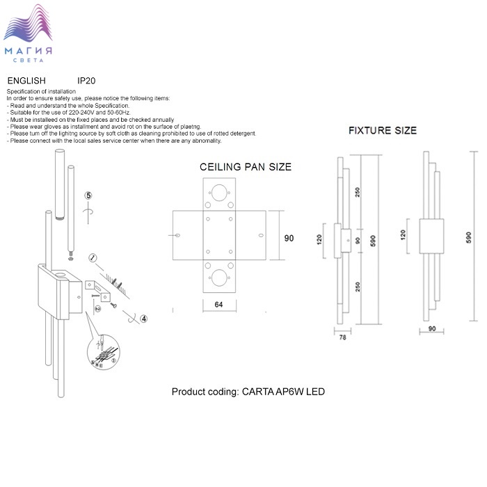 Артикул: CARTA AP6W LED BLACK/BRASS