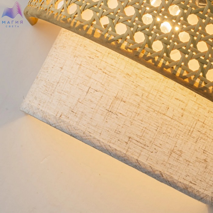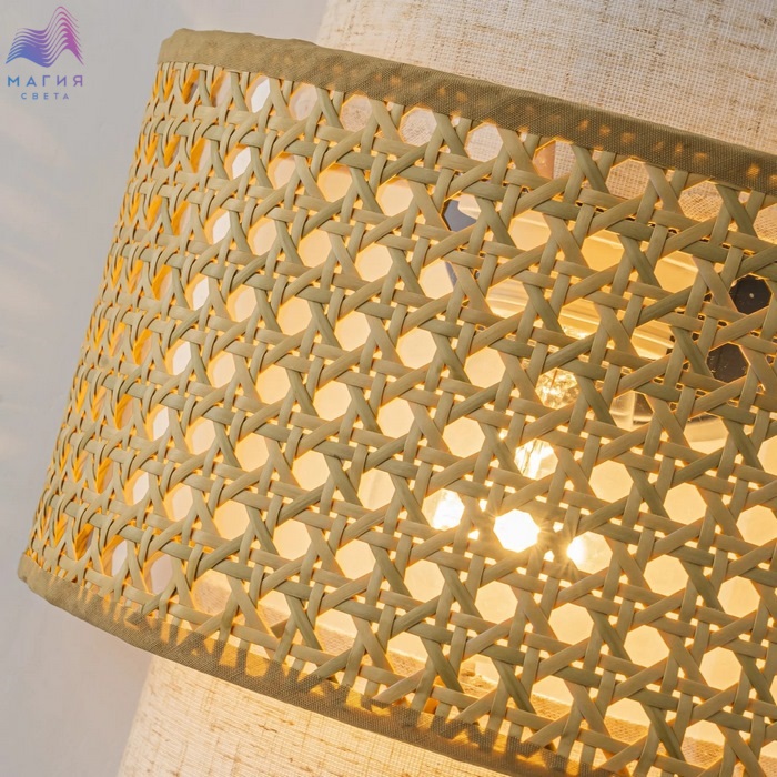 Коллекция светильников Favourite Organicum сочетает в себе природную эстетику и современный дизайн. Абажуры изготовлены из натуральных материалов: ткани, ротанга и плетеных бумажных канатиков, дополненные декоративным поясом из плетеного бамбука.