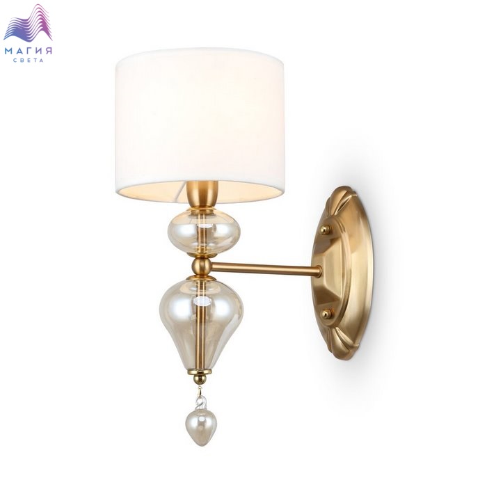Изысканная коллекция светильников Freya Raise исполнена в стиле современная классика. Арматура изготовлена из металла цвета латуни. Тканевые плафоны молочного цвета гармонично сочетаются с металлическим каркасом. Конструкция декорирована выдувными стеклянными элементами с перламутровым напылением. Источником света служит лампа с цоколем Е14.