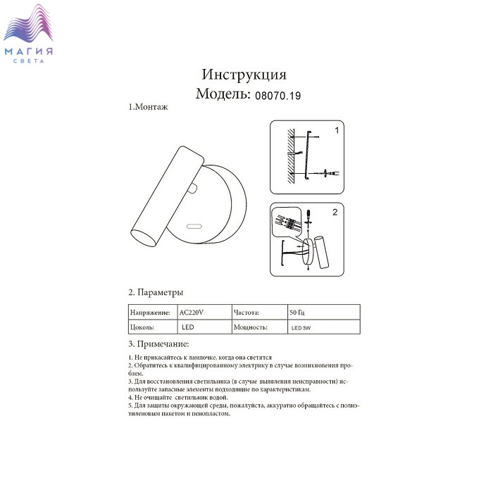 Источник света встроенный светодиод