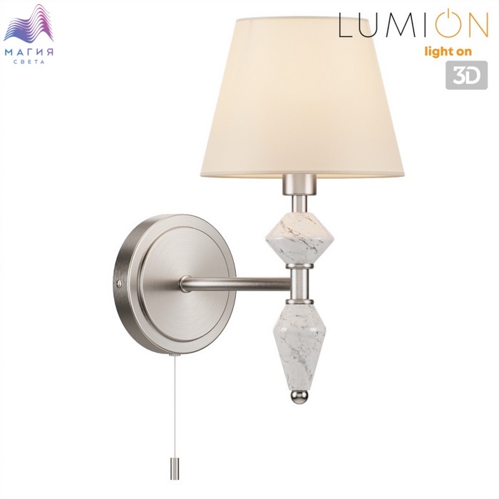 Коллекция светильников Lumion Vermont поражает изысканным керамическим декором, имитирующим белый мрамор. Мраморная керамика сочетается с белыми плафонами и объединена в единую композицию арматурой в цвете никель.