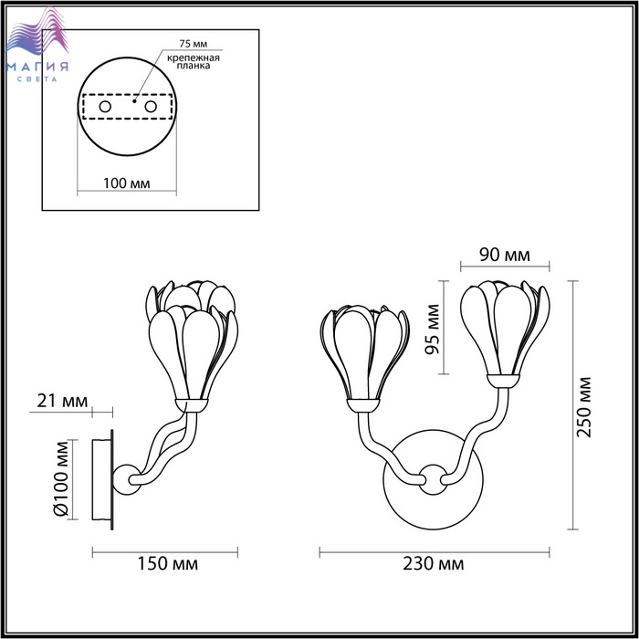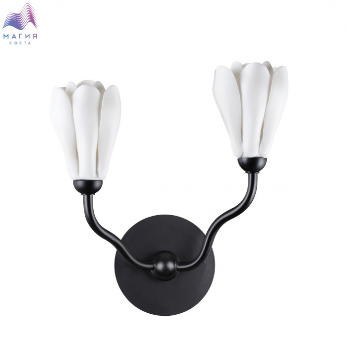 Коллекция Odeon light Gardi похожи на цветущую магнолию. Плафоны в виде белых цветов выполнены из светопропускающего фарфора. Арматура окрашена в матовый черный цвет.