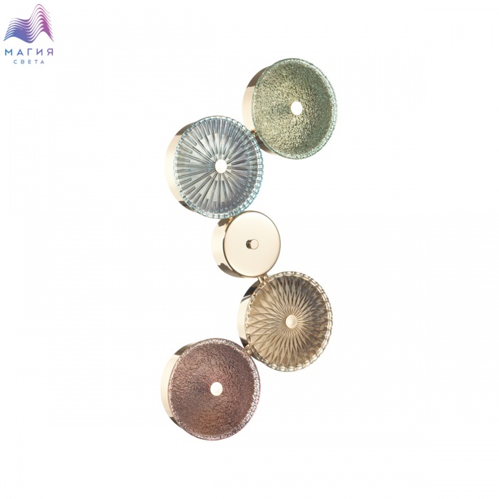 Коллекция Odeon light exclusive Caramella получила своё название благодаря сходству с карамельными конфетами. В ней сочетаются стекло нежных пастельных оттенков, золотой или хромированный металл, разнообразные паттерны стёкол и современный LED источник света.