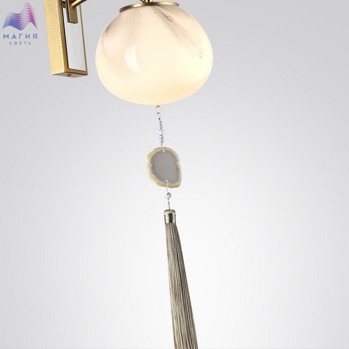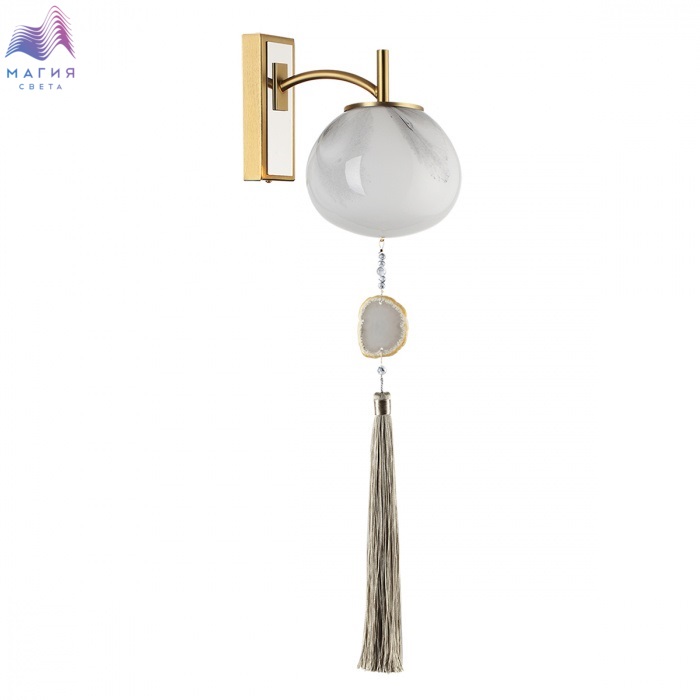 Нежная коллекция Odeon light exclusive Fiolent исполнена в стиле неоклассика. Главным декоративным элементом является струящаяся кисть и натуральный агат. Плафон изготовлен из стекла, напоминающего мраморные узоры.