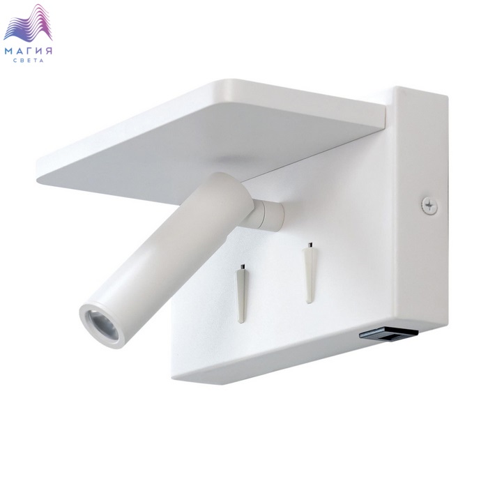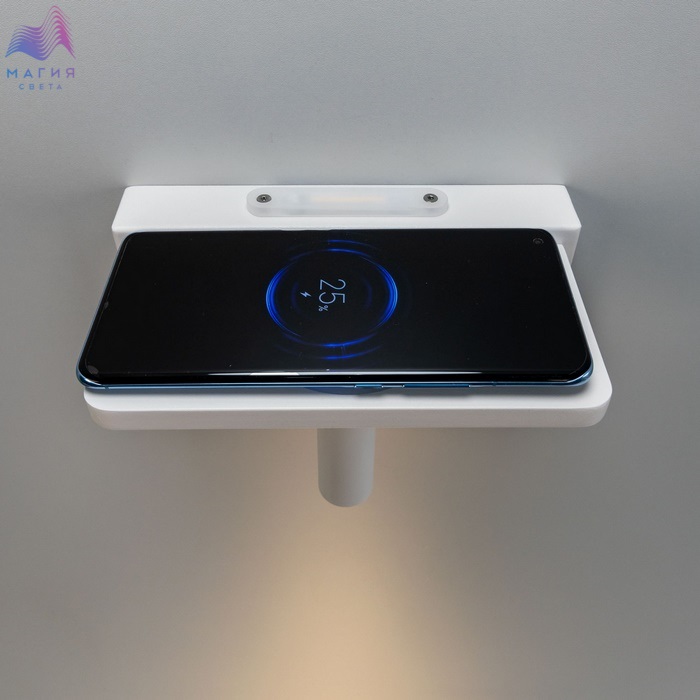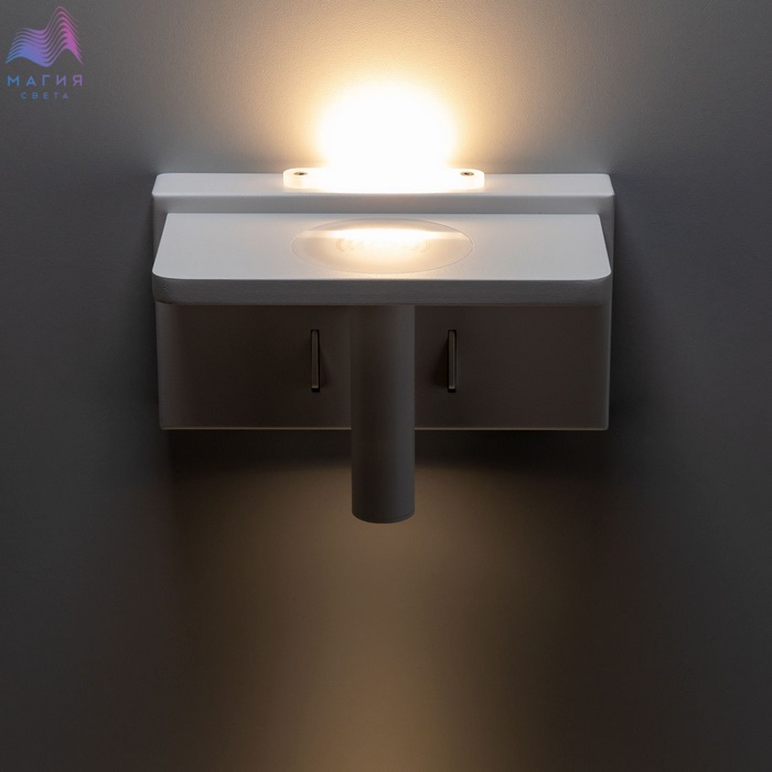 Современный настенный светильник Citilux Декарт CL704370 USB Qi с подсветкой для чтения. Корпус - металл, цвет - белый матовый. В изделии два источника света. Верхняя подсветка, для общего освещения, мощностью 3Вт. Нижняя направленная, поворотная подсветка, для акцентного освещения, мощностью 3Вт. Обе подсветки с индивидуальным выключателем. Модель оснащена удобной беспроводной зарядкой для смартфонов стандарта Qi мощностью 10Вт и USB выходом 5В/2А.