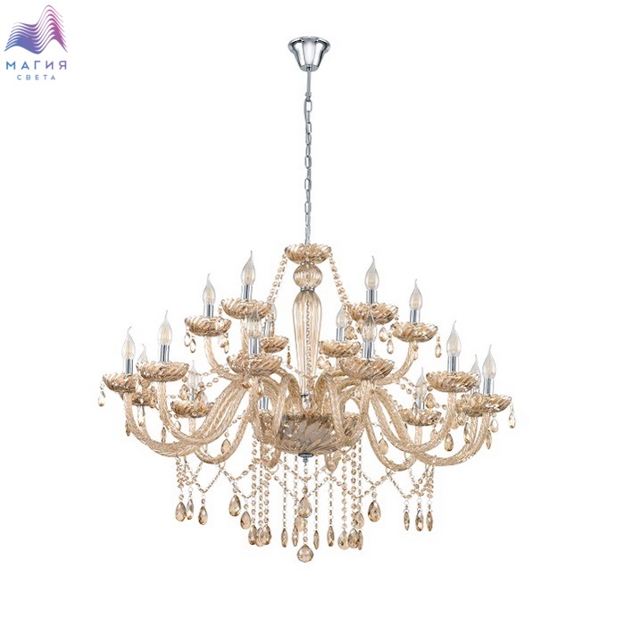 Eglo Basiliano исполнена в коньячном цвете. Металлический каркас обрамлен стеклом и декорирован стеклянными подвесками. В серии представлены подвесные люстры и бра.