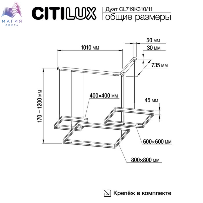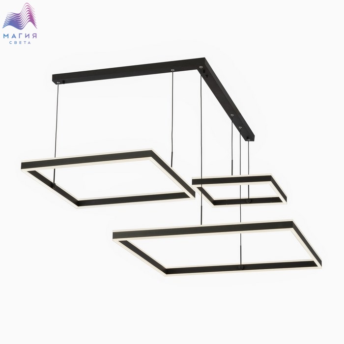 Светодиодный подвесной светильник Citilux Дуэт CL719K311. Материал: металл/полимер. Цвет: черный/белый. Модель с тремя подвесными квадратными светодиодными модулями-плафонами, высоту и угол наклона каждого из которых можно легко изменить. Пульт ДУ в комплекте (плавная регулировка яркости от 10 до 100%; управление цветовой температурой от 3000К до 5500К). Площадь освещения - до 35м².