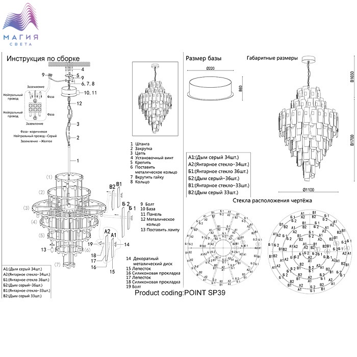 Цвет плафонов янтарный, дымчатый
