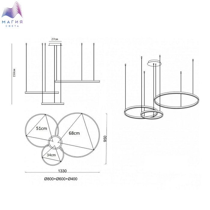 Диаметры колец: 40, 60 и 80 см.