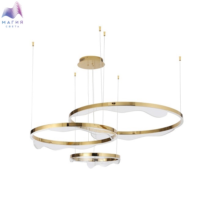 Подвесные светильники Kink Light Кастела. Металлические кольца покрыты латунной краской. Акриловый декоративный элемент. Встроенные светодиоды. Цвет свечения - теплый белый.