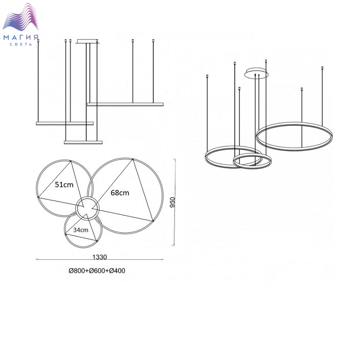 Подвесные светильники Kink Light Лауралюкс отличаются роскошным дизайном. Металлические кольца покрыты латунной краской. Каркас декорирован прозрачными хрустальными элементами. Цвет свечения - теплый белый. Диаметры плафонов: 40 см, 60 см и 80 см.