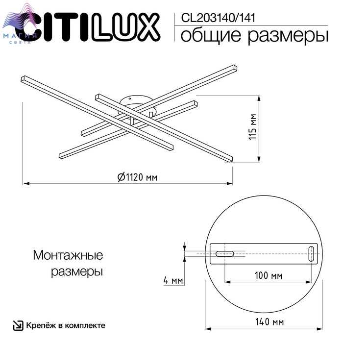 Светодиодная потолочная люстра Citilux Стиг CL203141. Материал: металл/полимер. Цвет: черный/белый. С помощью пульта ДУ можно плавно регулировать яркость 10% - 100%, менять цветовую температуру в диапазоне 3000K - 5500K.