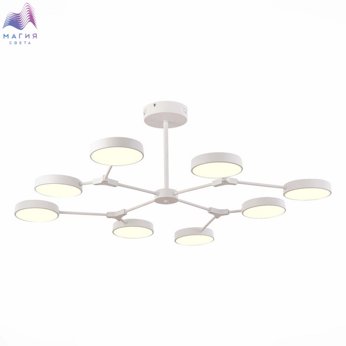 Люстры из коллекции Evoluce Monta исполнены в трех цветах: сером, черном/золоте и белом. Металлические плафоны дополнены акриловыми рассеивателями. В качестве источника света используются встроенные светодиоды, цвет свечения и яркость которых регулируются с помощью пульта ДУ.