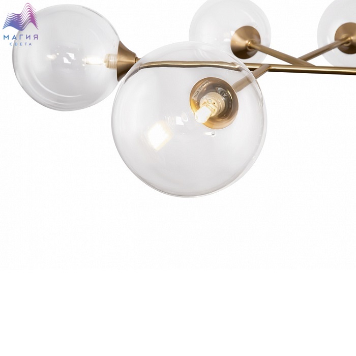 Одно из главных достоинств этой серии – функциональность и гибкость. Прозрачные плафоны-сферы из стекла дополняет металлическая арматура насыщенного золотого оттенка. Эклектичный светильник вобрал в себя различные направления – от лофта до хайтека – но это не главная его особенность. Современный дизайн постулирует необходимость кастомизации в интерьерном пространстве, и в данном случае она проявляется за счёт регулируемого крепления плафонов: вы можете изменять направление света и дизайн конструкции по своему вкусу! Бра и люстра Freya Maddison гармонично впишутся в пространство современной гостиной или кухни.