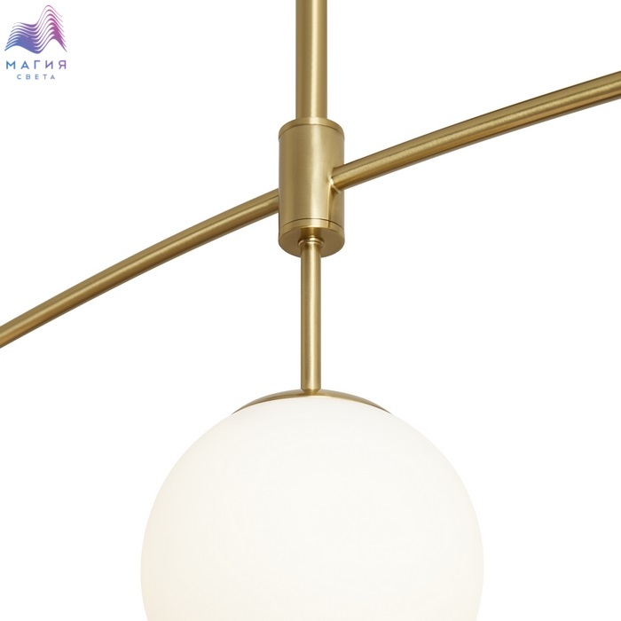 Freya Hanger — это новая коллекция потолочных люстр в цвете латуни и раскидистыми плафонами в виде шаров. Плафоны изготовлены из белого стекла, создают мягкий рассеянный свет.