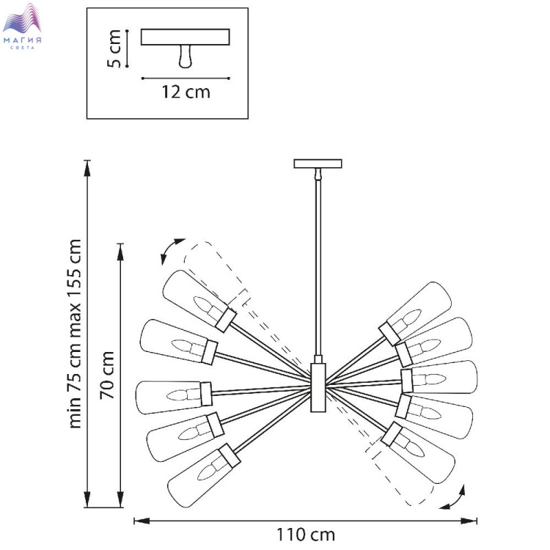 Высота без подвеса (мм) 700